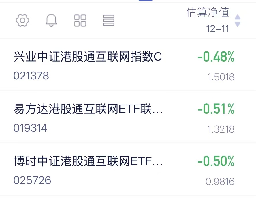 $易方达中证港股通互联网ETF发起式联接C(OTCFUND|019314)$估值回调0.51%
