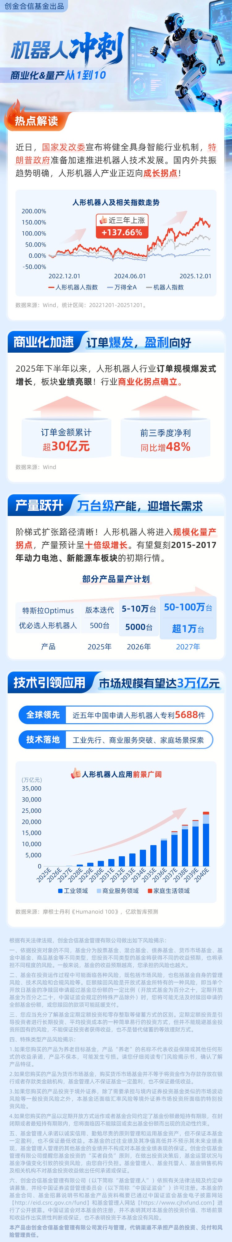 人形机器人将进入规模化量产拐点,产量预计呈十倍级增长,或有望复刻2015-2017年动力电池、新能源车板块的初期行情 >>$创金合信兴选产业趋势混合C(OTCFUND|014409)$