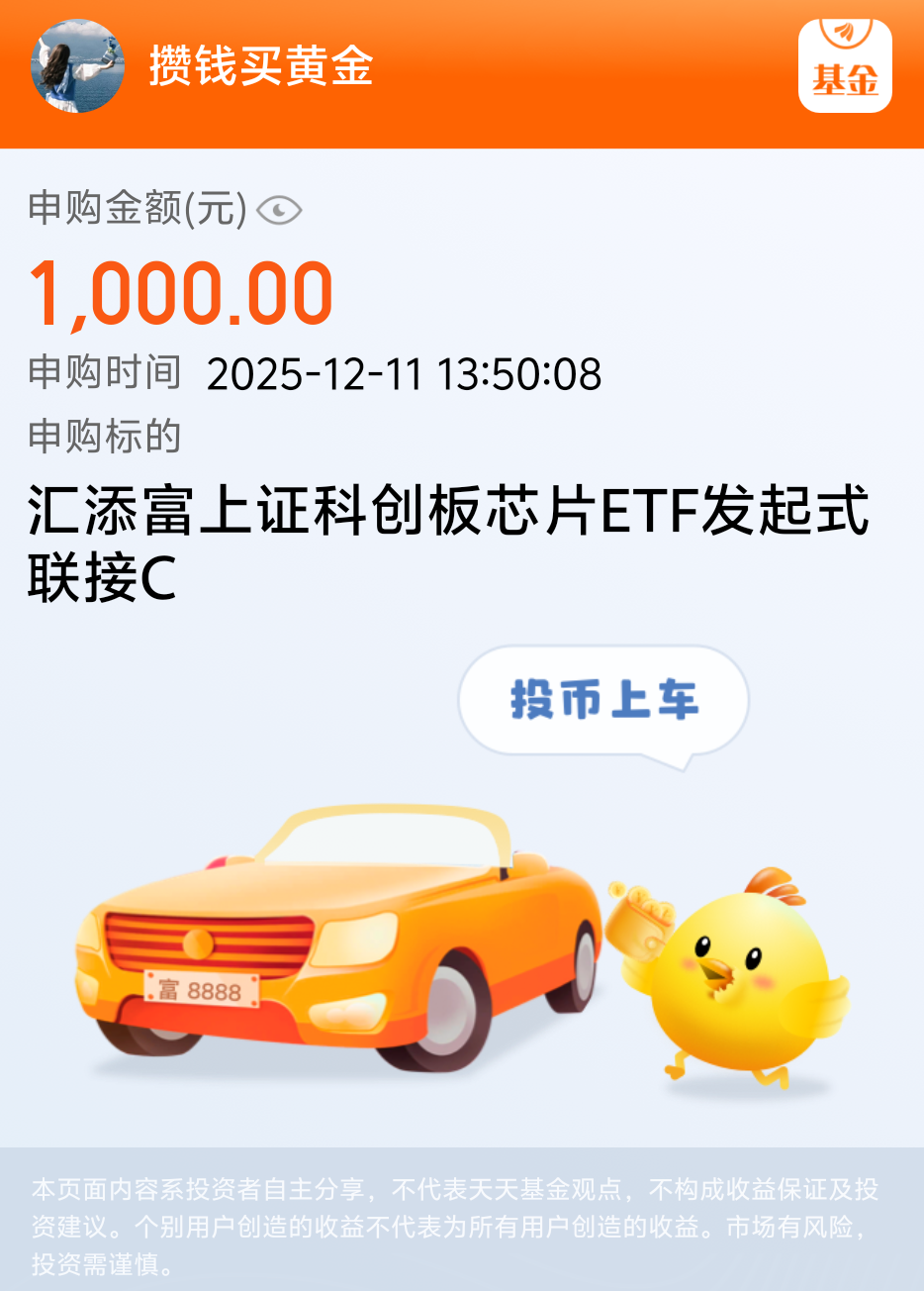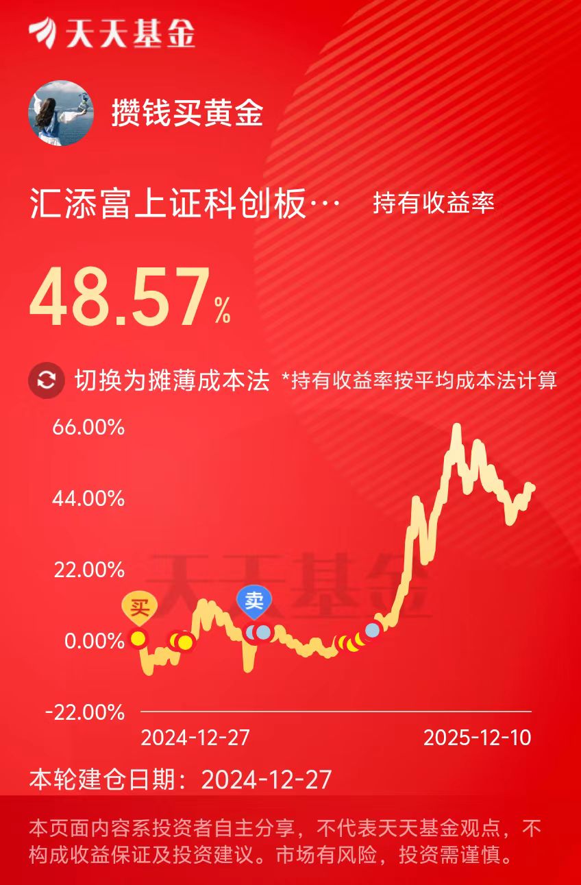当前全球芯片产业格局重构,国内政策持续加码“强链补链”,科创板芯片企业凭借高研发投入与技术突破,在AI算力、汽车电子等新兴需求驱动下,成长空间广阔!汇添富上证科创芯片C近三个月涨了14.97%%,近六个月涨了50.71%%,持仓7天免赎回,操作比较灵活,目前持有收益率已经48.57%了,长期看好这个方向,我准备继续分批布局了!