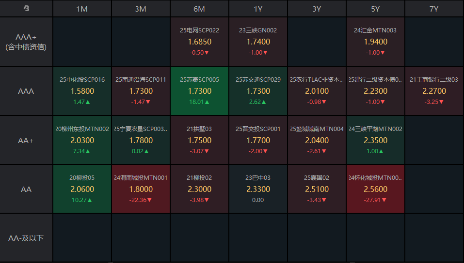 信用债:晴,其中城投债多云偏晴,产业债晴,二级资本债晴,银行永续债晴,商业银行债晴