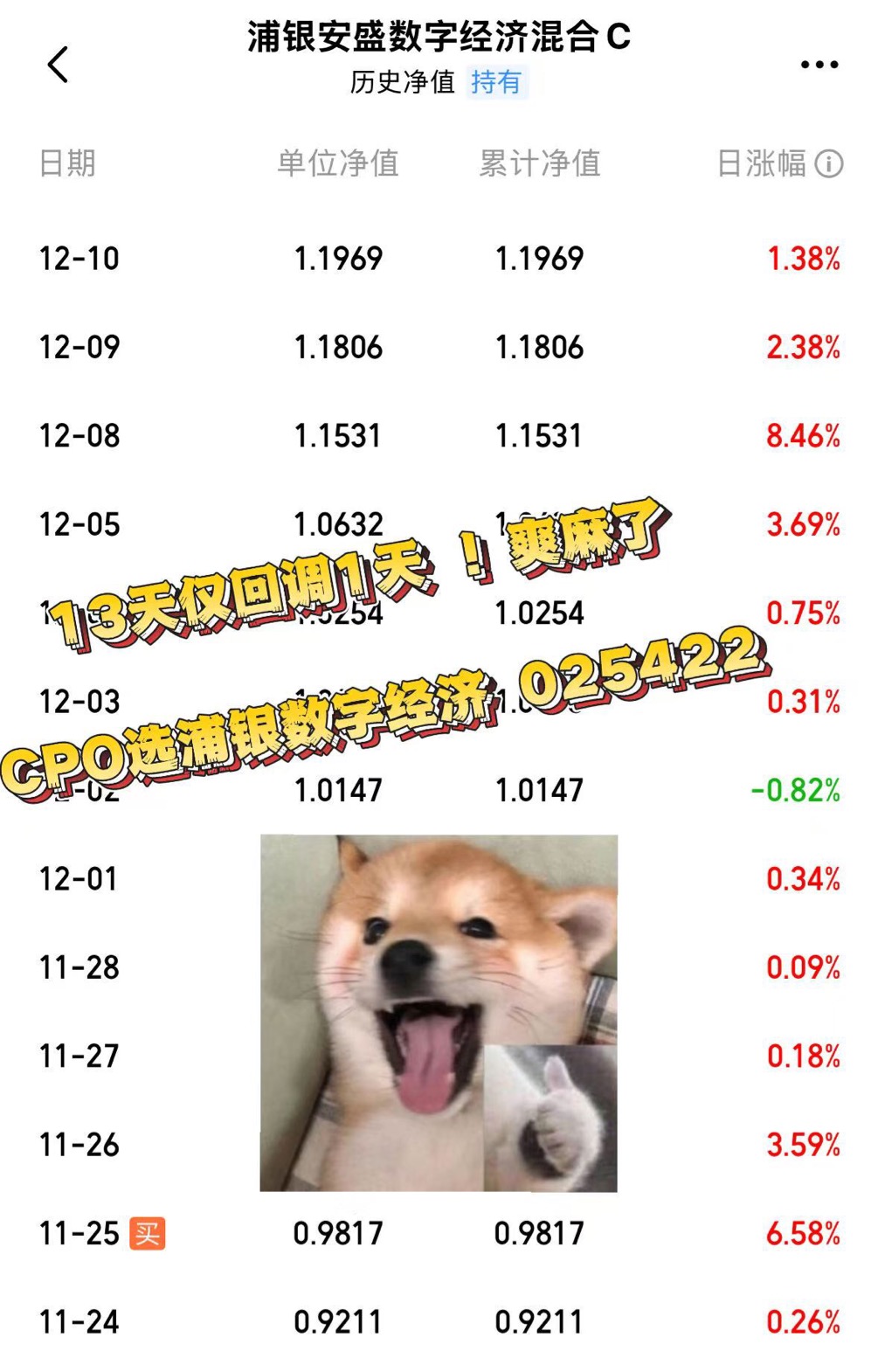 $浦银安盛数字经济混合C$今天继续吃肉估计又能创新高了。新晋卷王,超越永赢、信澳