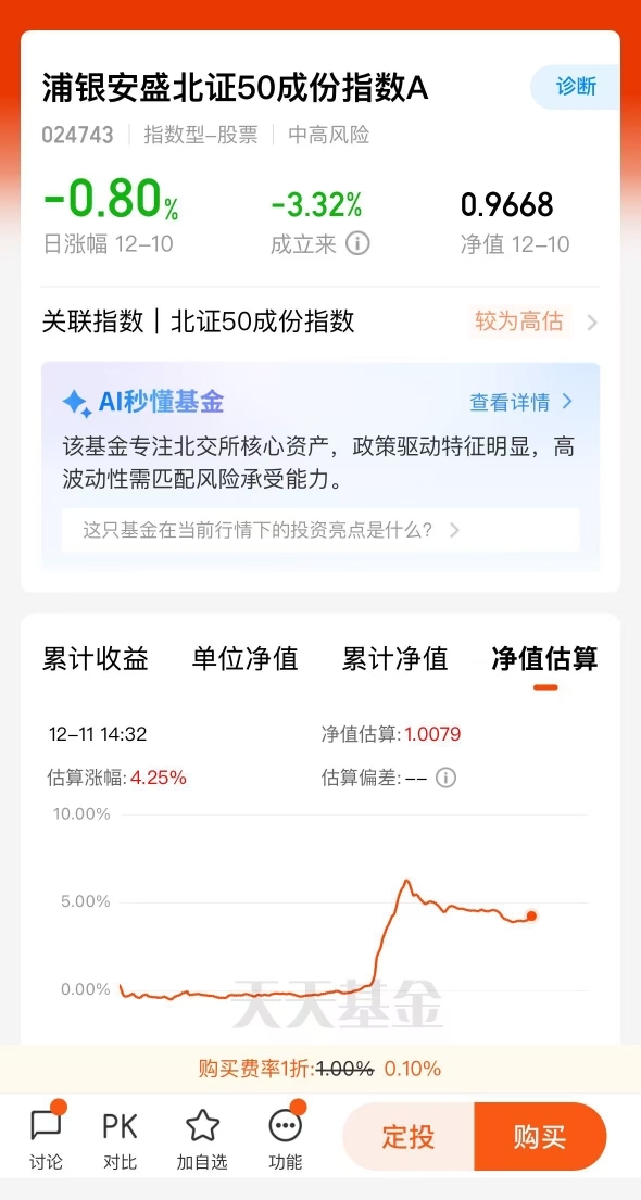 #【跨年坦白局】提问金梓才、陈果# 北证50基金有份额限制,大部分都限购了,不限额的浦银安盛北证50跟踪紧密$浦银安盛北证50成份指数A$