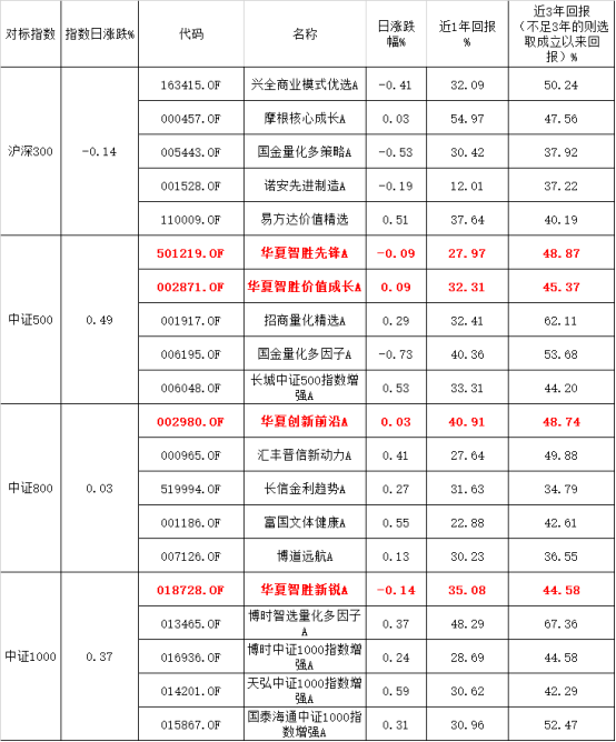在不稳定的市场环境下,昨日超额专区只有半数产品日跑赢对标指数,但总体波动不大,表现较好的是对标中证800的产品,普遍取得了正收益和超额收益,其中华夏创新前沿的年收益也来到了40%独领风骚。但其实越是波动,咱们的投资目光越要长远,比如对标中证500的华夏智胜先锋,不仅三年回报近50%,更重要的是天天用户正收益比例极高,超95%,而且持有收益高于20%的人超7成,这在天天超额专区里的产品都是第一档的存在。毕竟专区里更加强调的属性是长期跑赢,因此我们也得长期持有才能更大概率获得高收益。