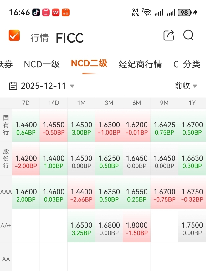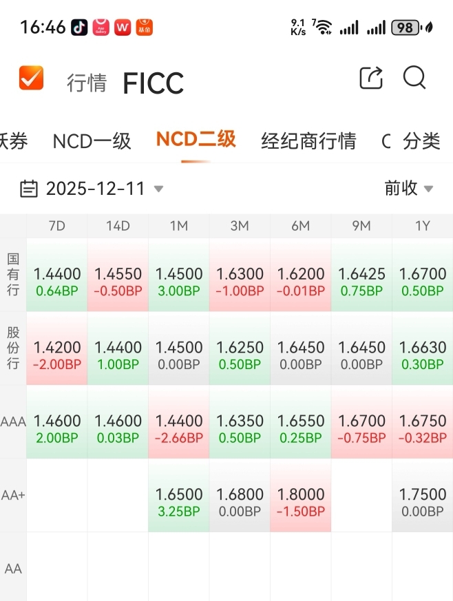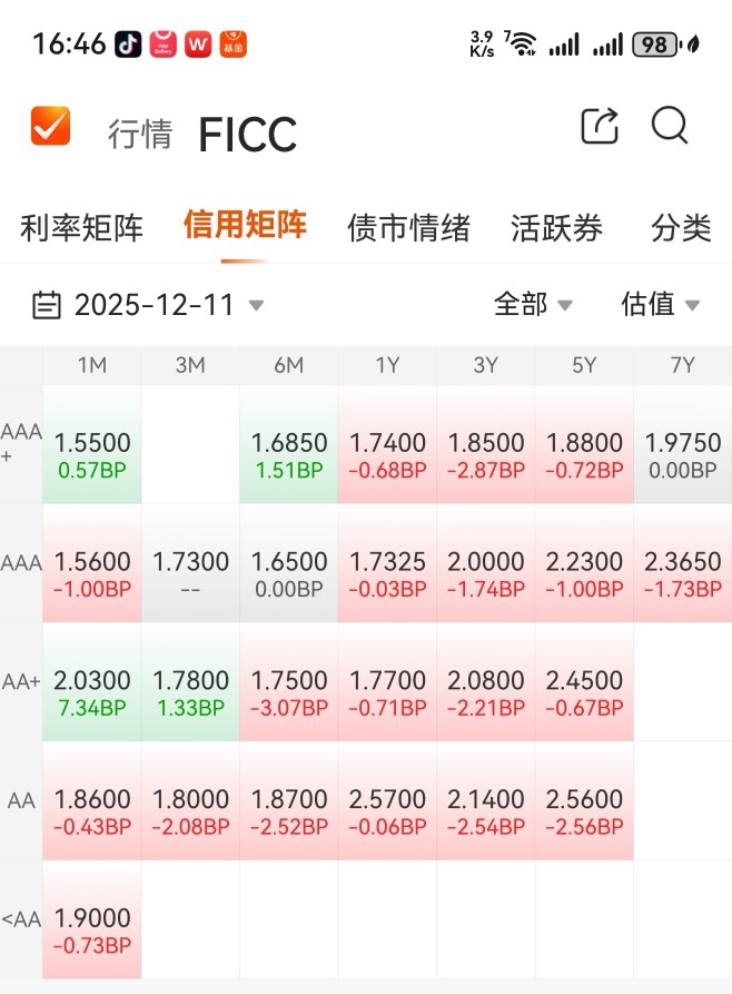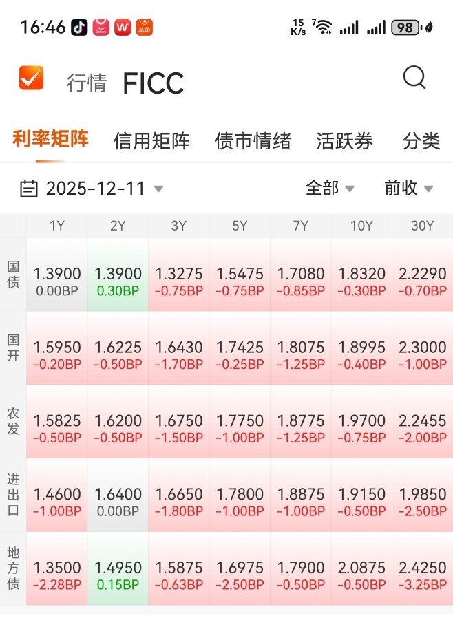 在今天下午16点46分,观察今天债行情。