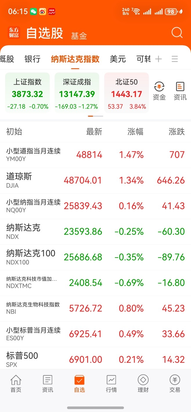 在今天早上,观察美股纳斯达克100指数、纳斯达克科技市值加权指数,在昨天收盘分别