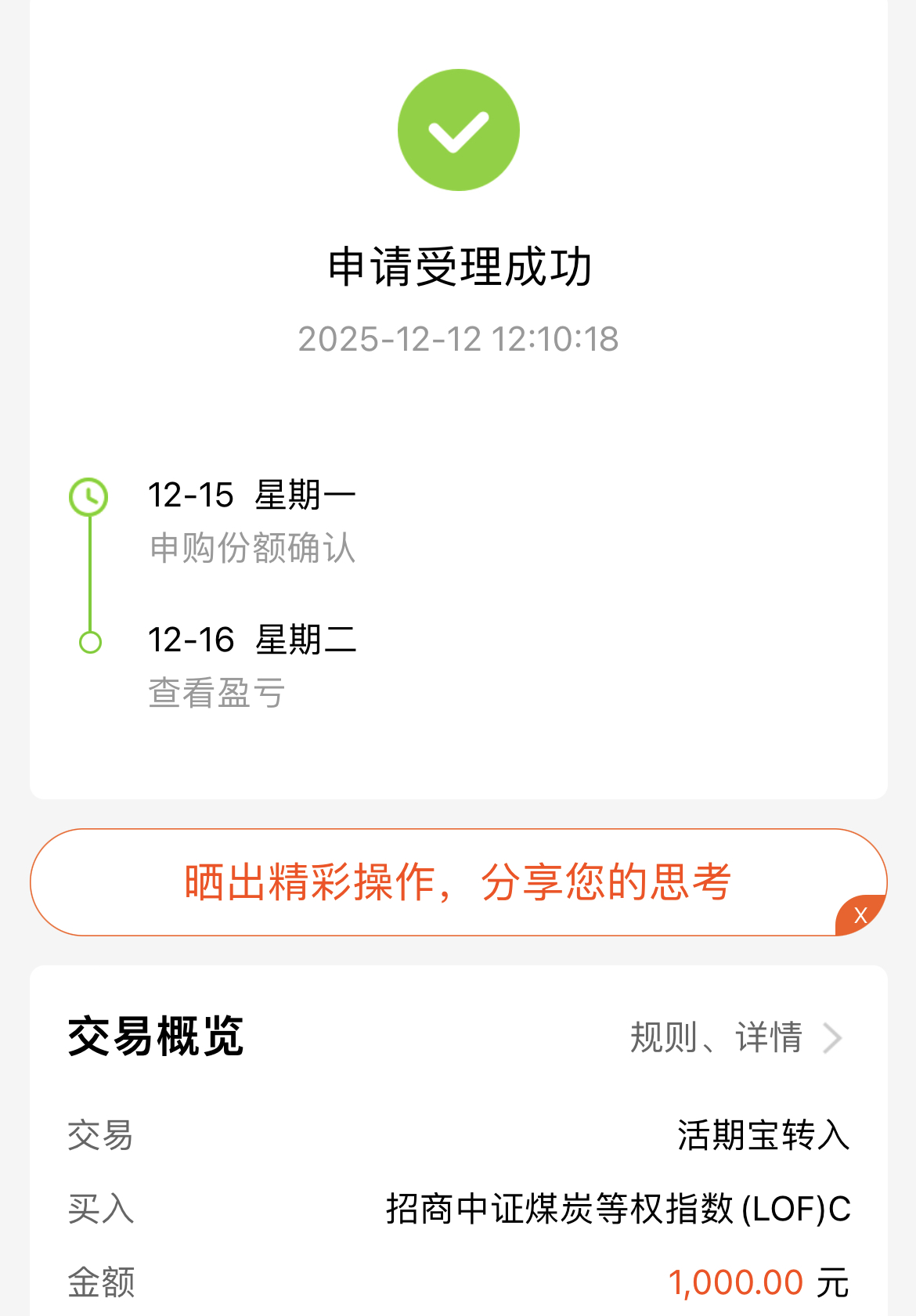 今天大盘震荡走势,不少板块冲高回落,煤炭板块也跟着回落了,不过能源强国战略的大方向摆在这,加上行业优化政策的加持,板块长期逻辑还是很稳的。我今天加了点$招商中证煤炭等权指数(LOF)C(OTCFUND|013596)$,它是煤炭领域唯一的等权指数,中小盘权重更高,更能捕捉板块内的收益机会,我也趁着调整布局,慢慢拿着等后续反弹。