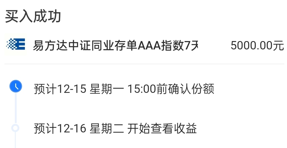 $易方达中证同业存单AAA指数7天持有$ +5000元!