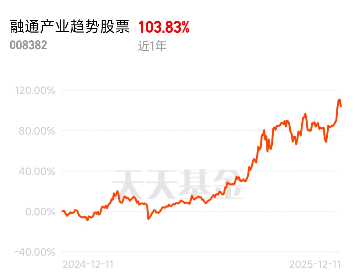 截至2025年12月初,该基金今年以来收益率超过108%,近一年收益率超过103%,在4000多只同类基金中排名前列。基金经理李进拥有清华大学工学博士学位。他将严谨的科研思维(大胆假设、小心求证)应用于投资,对人工智能等新技术趋势有敏锐的洞察力,并能通过深度产业链调研果断布局。该基金主要投资于符合时代发展大趋势的行业,如人工智能、互联网、新能源、创新药和新消费等。它其组合采用“双引擎”策略,兼顾高景气的成长型资产和稳健的价值型资产,并根据市场情况动态调整,力求平衡收益与风险。
