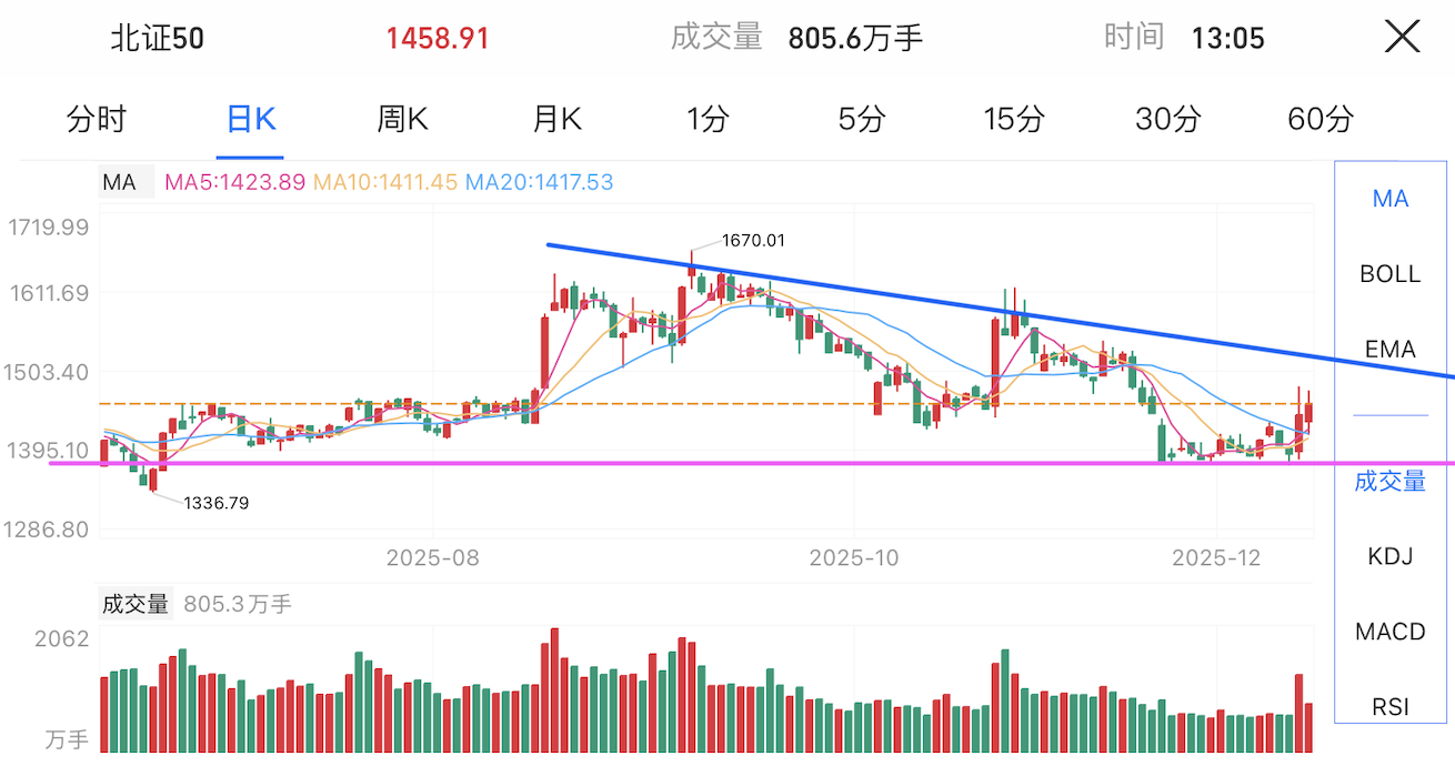 北证50:走势仍处于回调趋势,持续受到下降趋势线压制。当前正在前期低点支撑位窄幅波动。近两日出现 突然放量反弹,表现出回升的迹象。鉴于其固有的高波动性,仍需谨慎控制风险。
