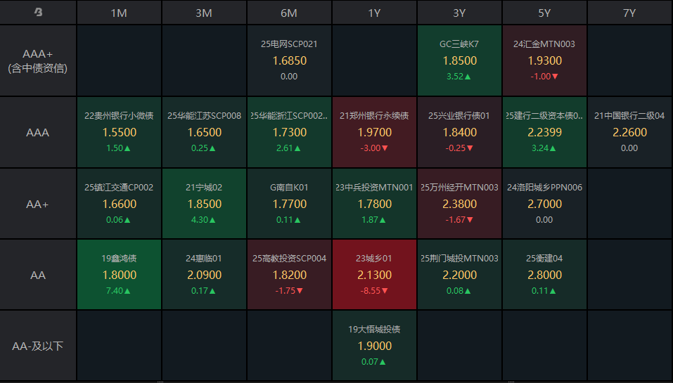 信用债:阴,其中城投债多云,产业债晴,二级资本债阴,银行永续债多云,商业银行债多云