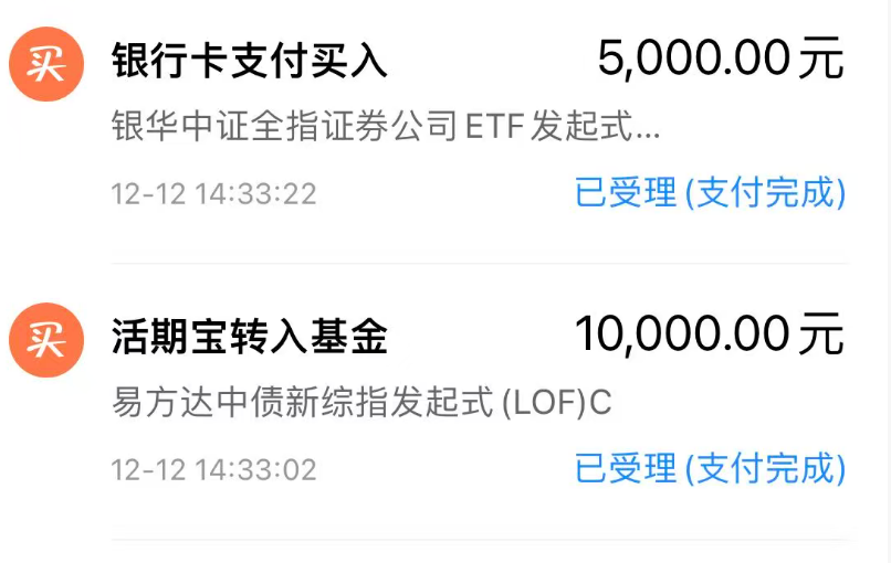 买入5000元$银华中证全指证券公司ETF发起式联接C(OTCFUND|025194)$,券商继续上涨,熙凤是上个月开始建仓的,作为牛市旗手,熙凤觉得在震荡时期分批建仓是不错的选择,证券板块和其他板块不太一样,大涨的时候它基本都领先,但是啥时候涨咱们也不知道。现在12月中旬了,今年券商业绩也是大幅提升的,不管是开户数还是交易量都是近年来新高,熙凤选择继续加点仓。