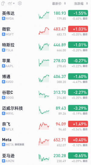 【重仓涨跌】昨日华宝纳斯达克精选前十大重仓股3涨7跌,美元兑人民币中间价↓0.09%。(重仓股涨跌情况仅供参考,不代表当前基金业绩表现,还请以每日更新的实际基金净值为准)