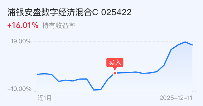 个人今日顺势上车浦银安盛数字经济混合C--1000元,这是一支反弹能力非常亮眼的股票型基金,重点配置了CPO的主动型基金,爆发性极强,消息面上英伟达H200芯片对华出口政策近期出现调整,老美宣布允许英伟达向中国已审核的客户出售H200人工智能芯片,这能在短期内为中国AI发展补充算力,行业成长确定性较高,缓解国内部分高端算力需求,间接对上游的CPO等硬件产业链带来积极预期,近期6连涨在同类中表现出圈,涨幅大幅跑赢同类基,高度集中于CPO,净值波动与单一行业表现高度集中,规模相对较小的主动管理型基金理论上在调仓上可能更灵活,基金经理可以通过主动选股来捕捉机会。收益曲线爬坡能力强,昨天小幅调整,今天小涨也算给到了加仓机会,个人小额介入一笔。