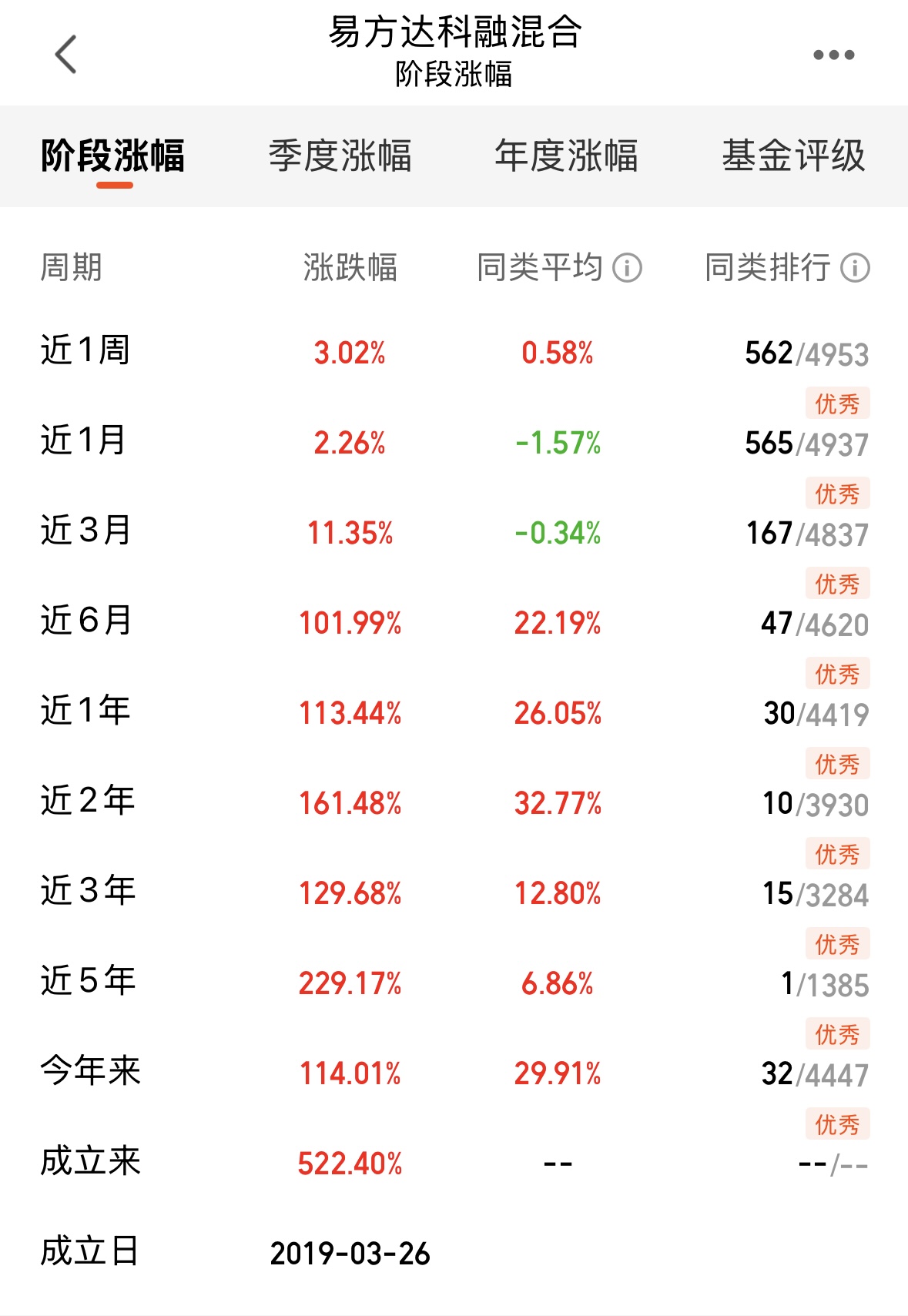 我昨天差点就把半导体卖了真的,3900附近来回的洗,筹码真的很难拿得住啊!所以这个均衡配置的就比较有优势,$易方达科融混合(OTCFUND|006533)$这块,科技新能源都有,各个维度都是红的,这个业绩是真的很强了。不用追热点,跟经理走就完事。