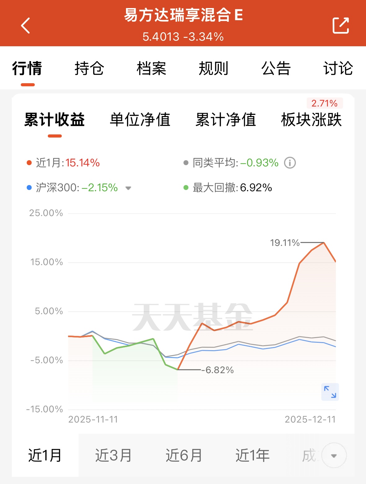 今天红麻的一天,大家打算格局还是止盈?我的做法是继续格局了,当前市场流动性宽松,政策持续加持数字经济,AI+CPO主线确定性凸显。易方达瑞享E,近一周15.14%,对比同类-0.93%,很给力,从成立以来有440%,业绩是相当行。