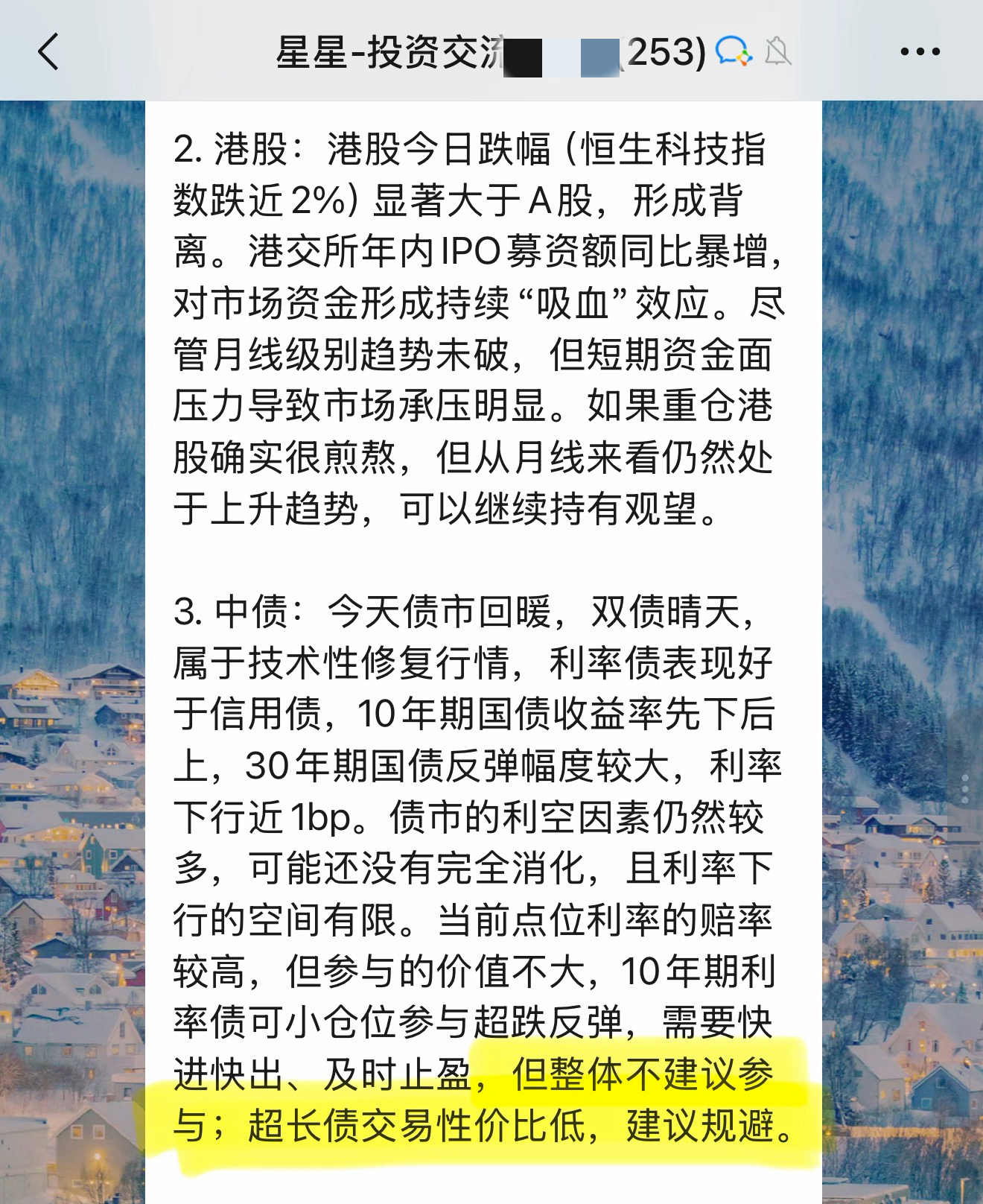 但是这一波我也没有加仓,我跟大家说的也是超长债性价比低,建议规避。中期来看如果年底降准降息落地,对利率债的确是利好;但一方面公募销售新规仍然没有落地,利空没有完全消化;另一方面积极财政政策可能提振经济和通胀预期,长端利率下行幅度可能受限,所以性价比仍然不高。我最近一周都在增加权益仓位,明年稳当当仍然以固收+也就是混债为主,此外会逐步增加对乘风破浪也就是全天候策略的侧重,以适应更加复杂多变的市场环境。