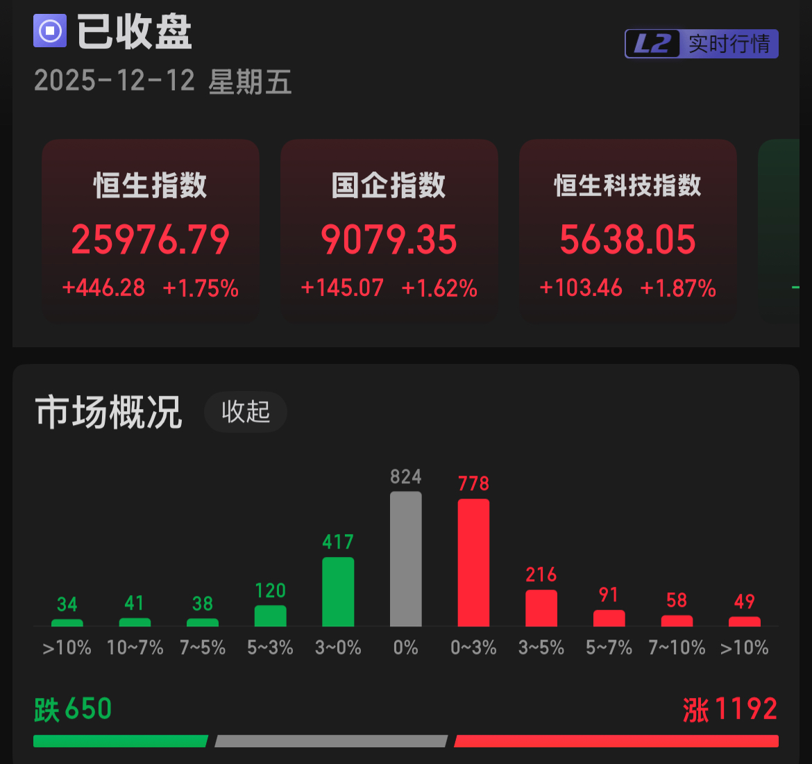 1、复盘:A股在政策定调积极与成交量显著放大的支撑下走出修复性上涨,成长风格占优,市场主线清晰围绕中央经济工作会议指引的科技创新与高端制造领域。H股受内外因素多空交织影响,美联储降息利好被内部流动性压力及个股风险事件对冲,市场处于震荡反弹格局。