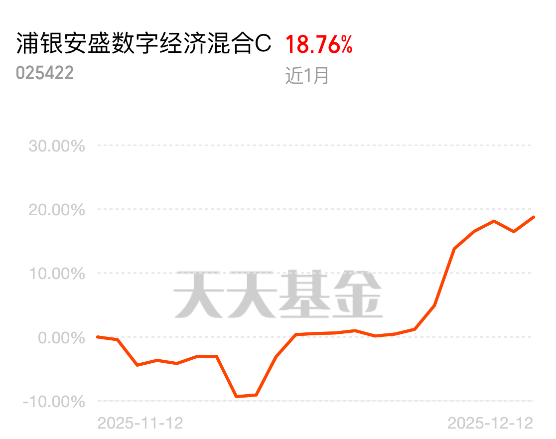 $浦银安盛数字经济混合C$ (025422)这两天我上车了。今天继续上涨1.96%,真是优秀。