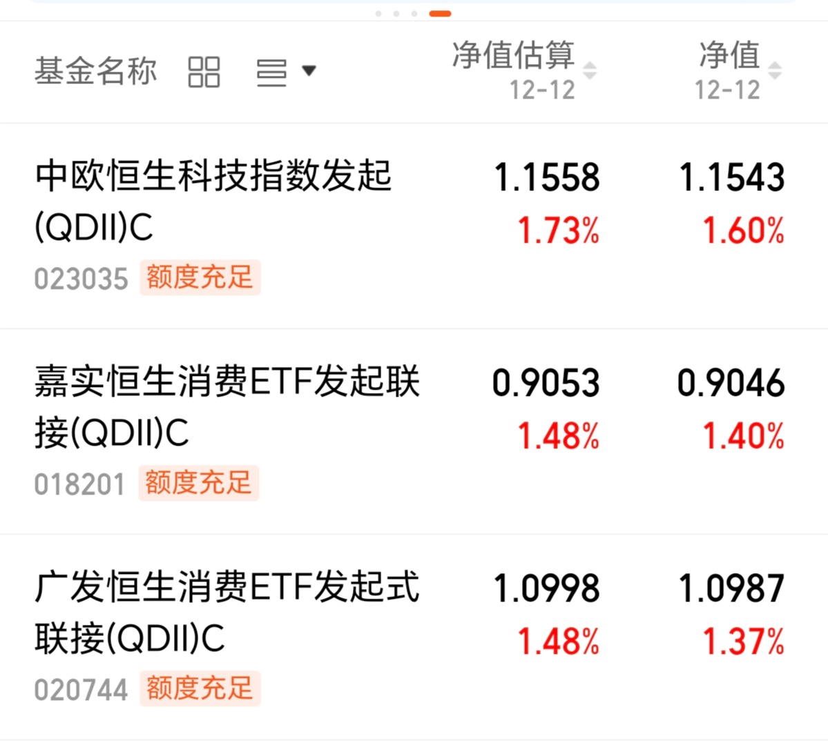 $广发恒生消费ETF发起式联接(QDII)C(OTCFUND|020744)$涨幅1.37%