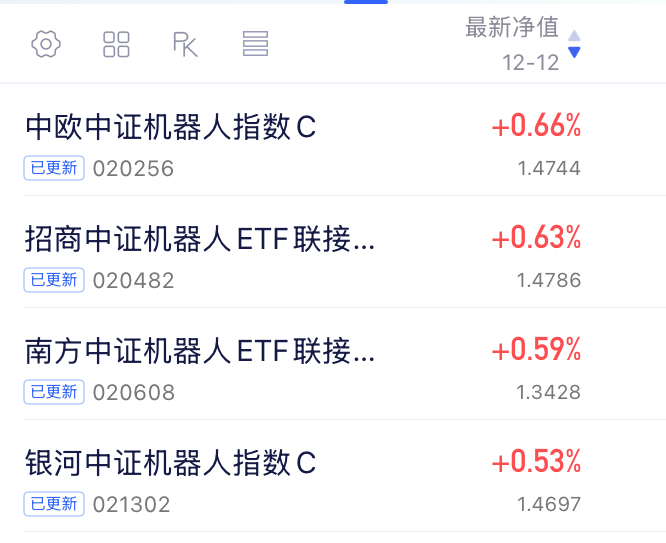 今晚机器人相关基净值播报