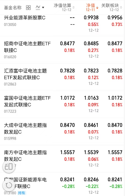 $广发国证新能源车电池ETF联接C(OTCFUND|013180)$今天净值-0.22%。