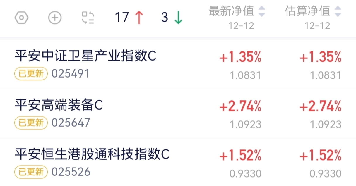 今天股市表现还是不错的,三大指数再次一起发力,收获满满$平安高端装备混合C$今天
