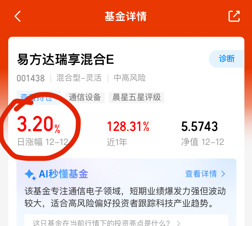 今天股市终于打破黑色星期五的魔咒,随着指数的高开低走,尾盘整体拉升了不少,科技板块强势上涨,易方达瑞享更新收涨3.20%,近一年涨幅128.31%,整体表现亮眼啦!$中欧数字经济混合发起C(OTCFUND|018994)$$中航机遇领航混合发起C(OTCFUND|018957)$#国际银价涨疯了!现在上车还来得及吗?#