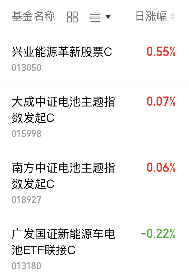 $南方中证电池主题指数发起C(OTCFUND|018927)$今晚上涨0.06%