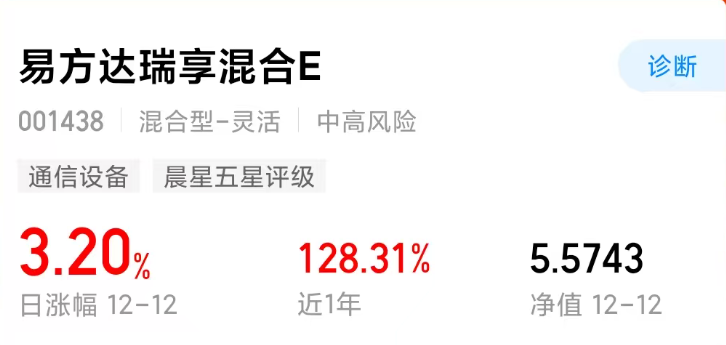 今天开心吃肉爱了爱了~才能今天的走势来看我对后续行情还是很有信心的,正好之前行情好的时候没有赶上,趁着今天CPO发力跟上了,我看易方达-瑞享混合E今天收涨3.20%,阶段性收益优于同类还是可以的,成立以来翻了4倍,长期业绩有验证效果也不错,安心等待后续行情了~
