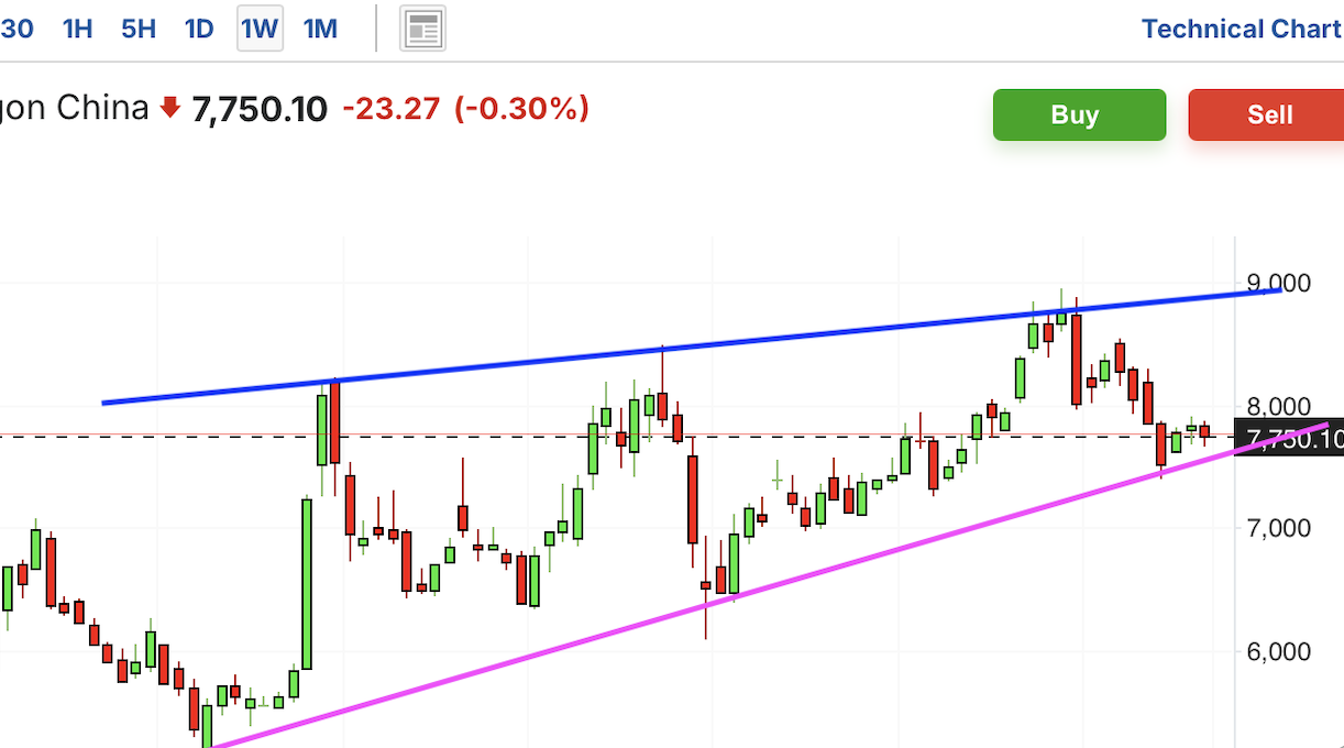 中概股:近期处于一个宽幅的震荡整理区间 ,整体形态像一个向上倾斜的上升楔形或上升通道 。指数在通道上沿遇阻后出现回撤,正在向通道的下轨支撑线靠拢。尽管周五小幅收跌,仍在通道下轨支撑线附近运行,止跌迹象仍存。能否在此处有效获得支撑并反转上行,是决定其短期趋势能否避免恶化的关键。