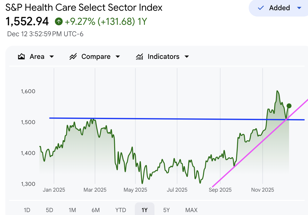 标普健康保健板块:该板块在经历了较长时间的底部筑底后,转为震荡上行趋势 ,最近在大幅飙升后回落,这几日再次强劲反弹后,周五继续保持上攻。目前成功守住了关键的短期上涨趋势线,更进一步巩固了其中长期上行趋势的稳固性。