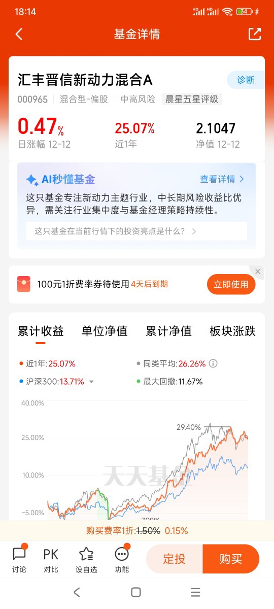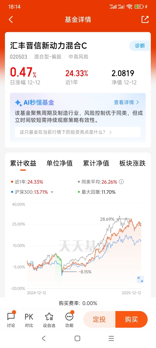 $汇丰晋信新动力混合A$、$汇丰晋信新动力混合C$ 自成立以来展现了稳健的收益特性。以2025年数据为例,其年内收益率不仅超越同类主题基金,更在市场波动中保持了较低的回撤幅度。这种“攻守兼备”的表现源于其均衡的行业配置策略,既覆盖新能源、半导体等高成长赛道,又通过金融、消费等防御性板块平衡风险。