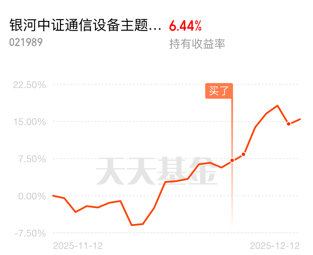 #青禾创作计划# 赛道选对,耐力十足,产业逻辑,业绩领先,内在价值,稳定订单,任凭潮汐,无惧震荡,事过无悔,不负遇见,各有渡口,各有各舟……$银河中证通信设备主题指数发起式C$ #晒收益#