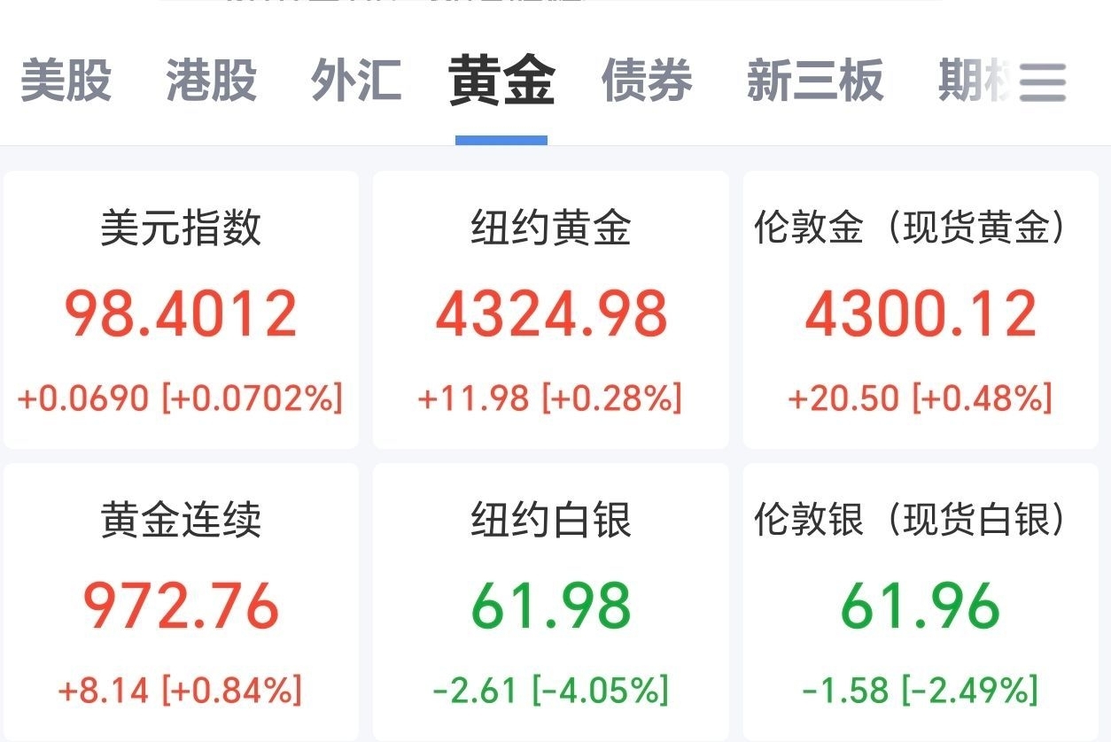 至周五晚,白银回调至62美元/盎司附近, 回落幅度大于2%,而黄金却站上了4300新高度,说明贵金属增长的空间依然存在。
