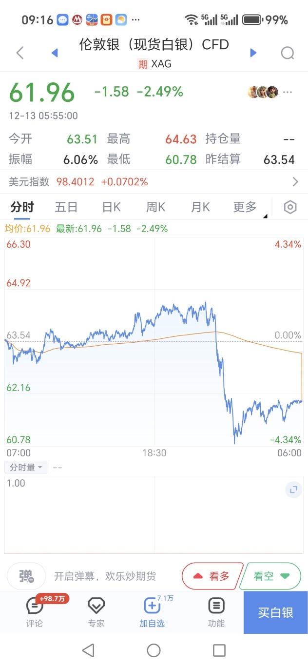 上周白银价格突破60-路后高歌猛进,一度冲破64新高,一周内涨幅超过8%,由于短期过快拉升,回调也就在预料之中。