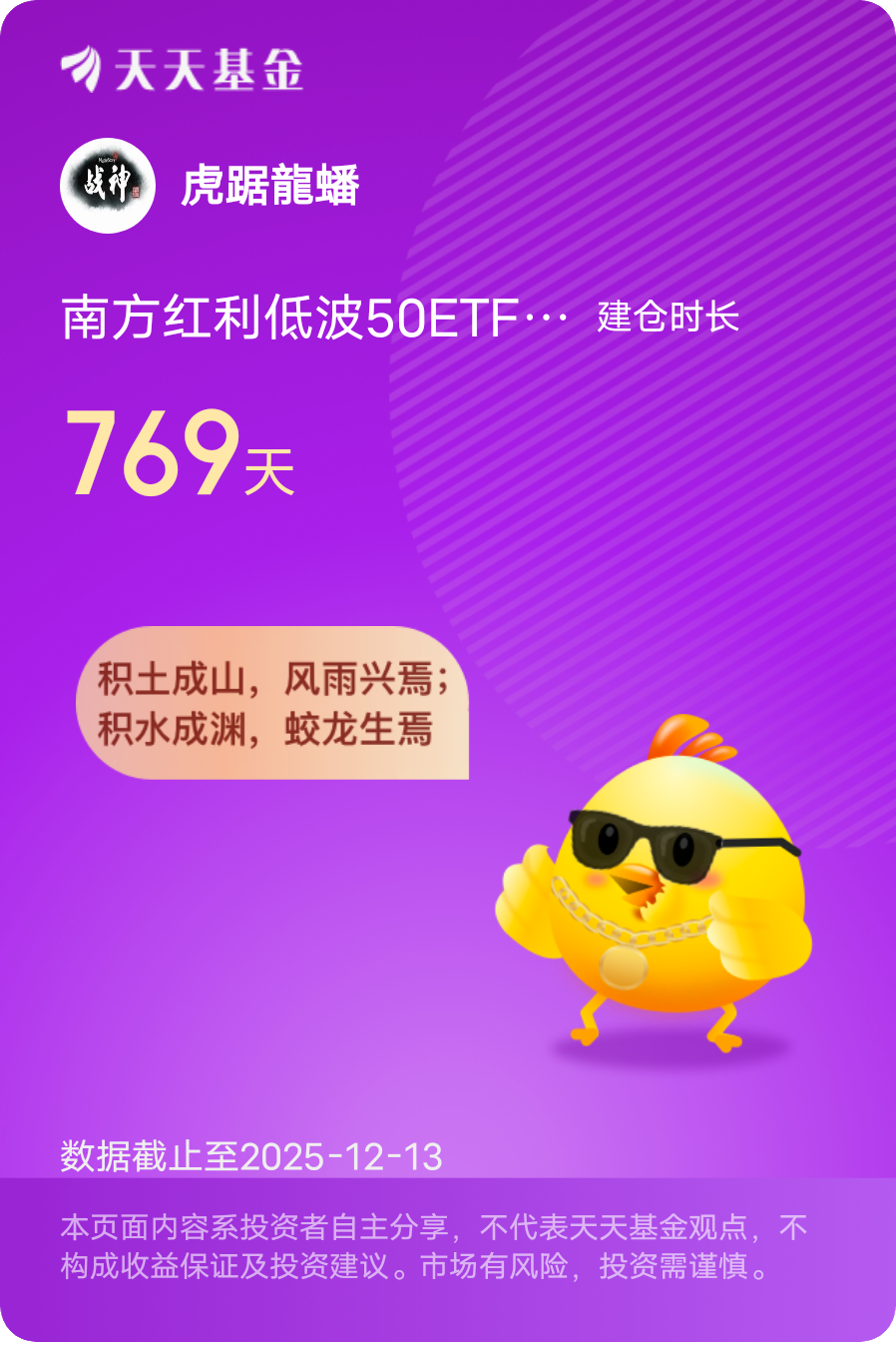 基民小虎是南方基金的铁粉,一直定投持有$南方红利低波50ETF联接C$$南方中证