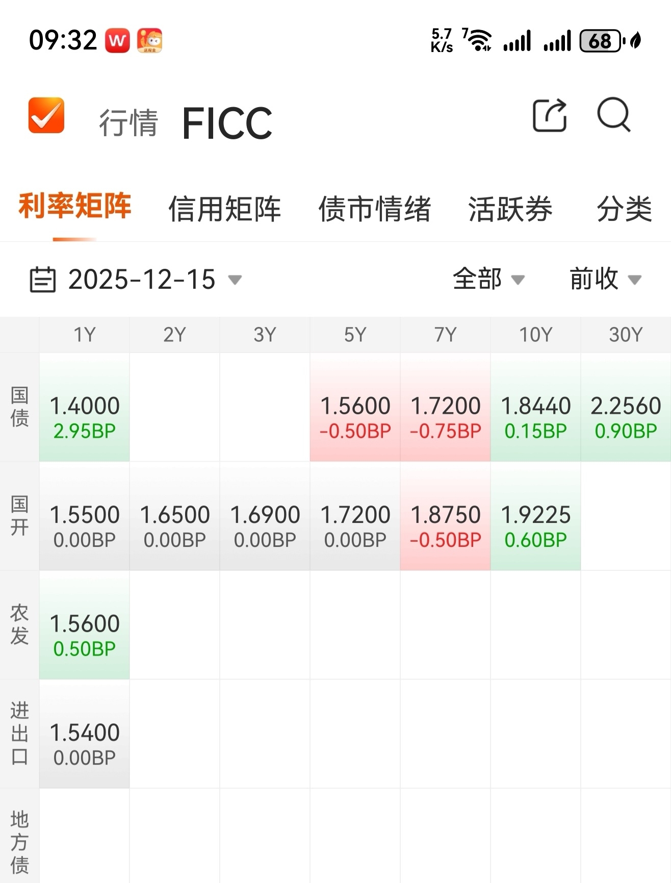 观察利率债:3红、5平、5绿。(红色,是涨。绿色,是跌。)