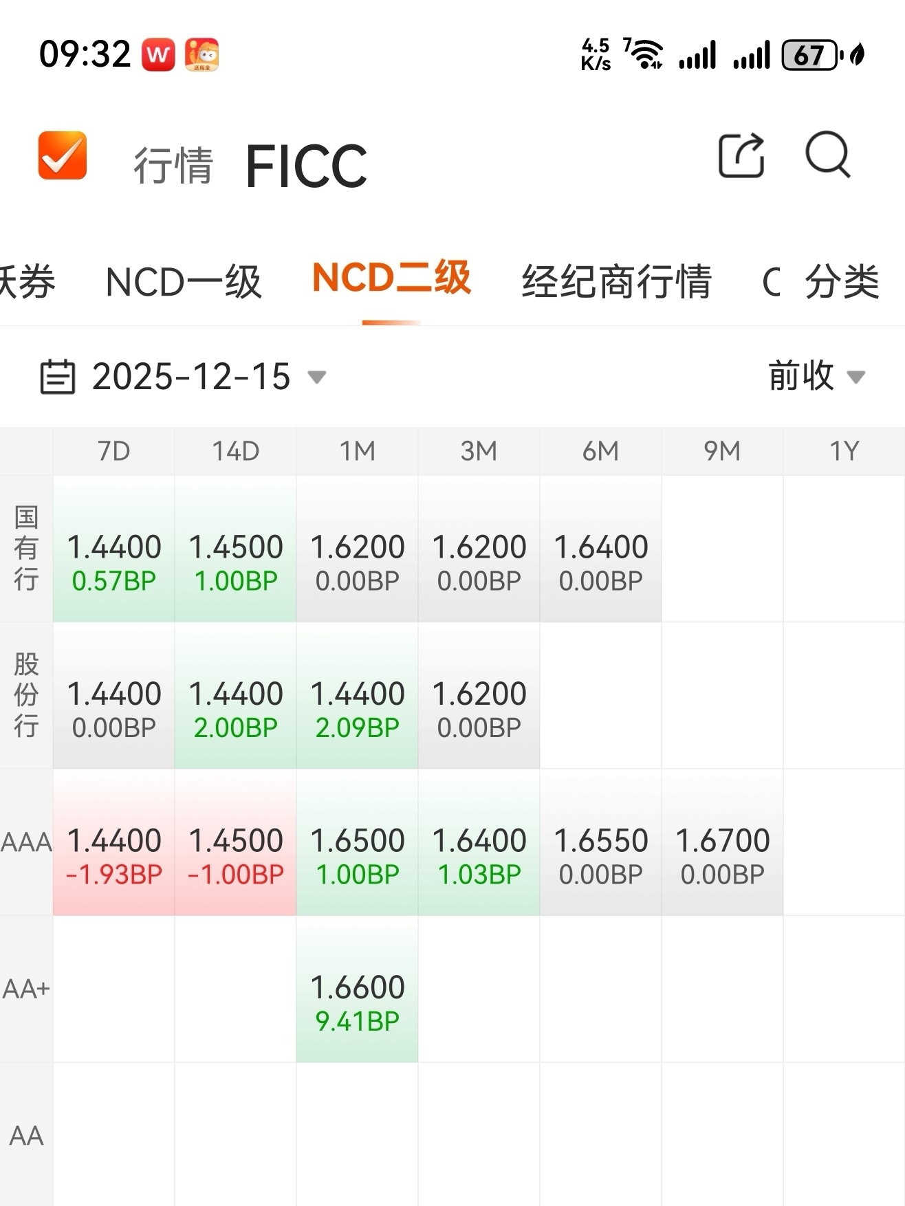 观察同业存单:2红、7平、7绿。(红色,是涨。绿色,是跌。)