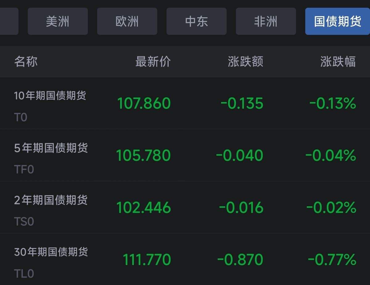 债市10年期国债期货-0.13%。