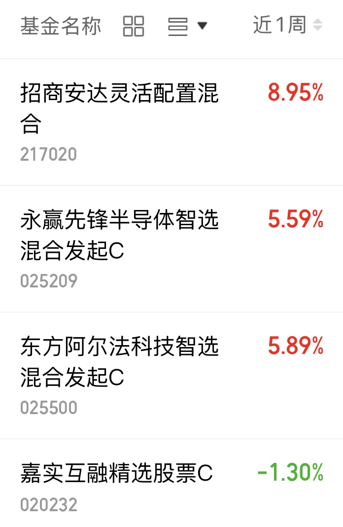 最近大盘行情涨跌比较不一,今天低开低走,三大指数均是绿的,科技方向迎来小调整,不过近一周行情来看,张幅还是不错的,$招商安达灵活配置混合(OTCFUND|217020)$近一周涨幅8.95%,还是挺不错的。