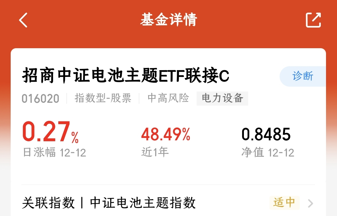今天市场行情震荡下,板块轮动加快。相比之前高景色等科技方向,我更看好四季度电池板块的潜力。国内首条大容量全固态电池产线已正式投产,能量密度实现翻倍,并计划2026年完成装车测试,技术突破明确。$招商中证电池主题ETF联接C(OTCFUND|016020)$近半年涨幅达48.49%,精准贴合产业升级主线。基于当前市场波动,我计划分批布局,期待借助技术迭代与政策支持的双重动力,能够收获稳健收益。