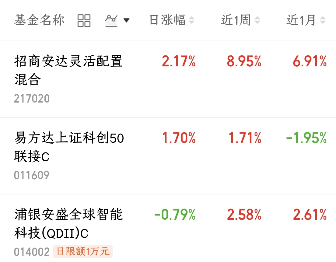 上周五科技板块回暖,其中通信电子产业不错,$招商安达灵活配置混合(OTCFUND|217020)$上周五上涨2.17%