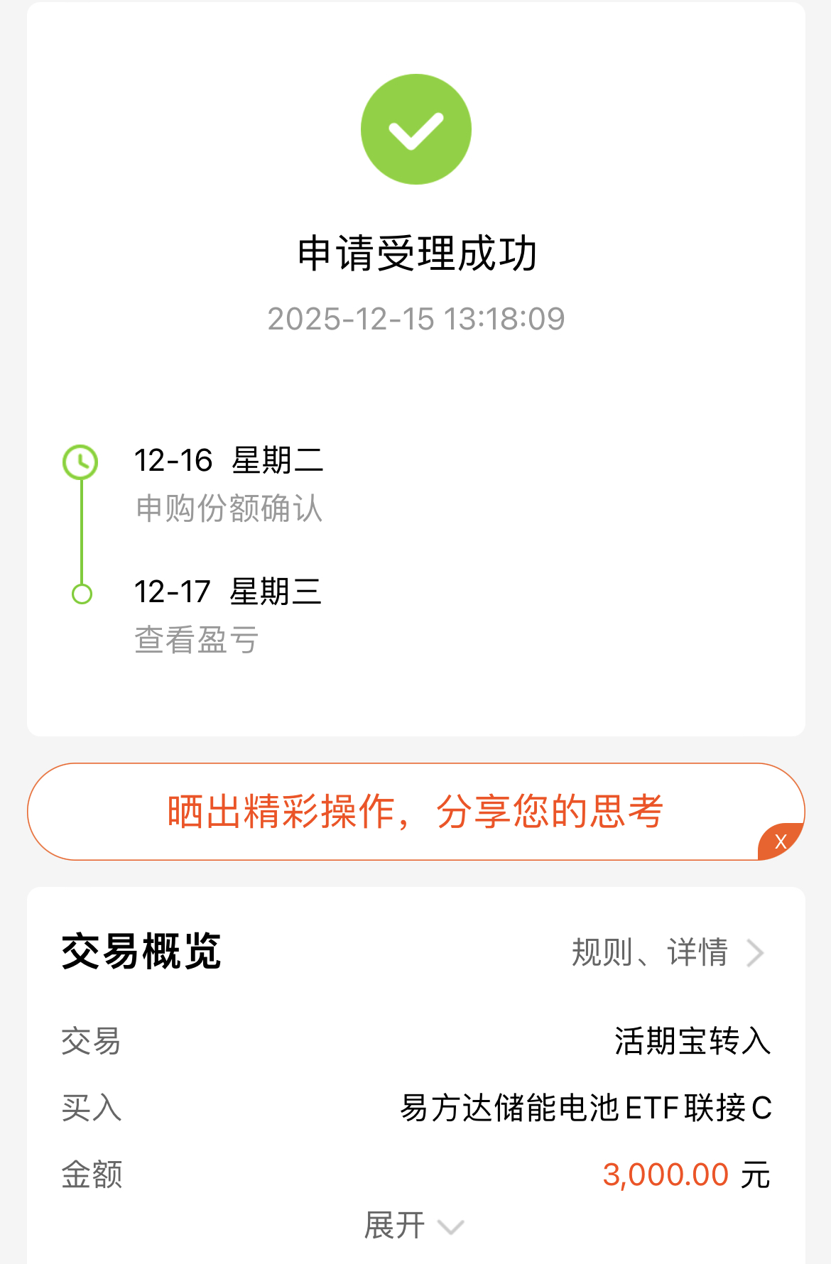 今日大盘震荡回调,个股分化明显,储能电池赛道虽有小幅波动,但海内外市场对储能配置的需求依旧旺盛,资金长期布局的意愿特别强烈,赛道长期趋势根本没走坏。储能电池指数还是全市场唯一主投储能板块的产品,能精准覆盖赛道核心标的,趁着这次调整我也加点,短期波动正好是我低吸机会,跟着赛道长期成长,坐等收益兑现啦!