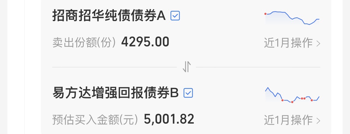 $易方达增强回报债券B$ +5000,权益波动比较大,回调容易拿不住,债市相对比较震荡,超长久期利率债近半年还是绿的,在这样当行情下还是固收+性价比高。今天继续加一笔易方达增强回报债券B,这是是一支老牌固收+了,定位属于中低波固收+,持仓大头在纯债,搭配13.94%权益和6.99%可转债增强收益,股债两手抓,主债少股,有攻有守。近半年收228个蛋,近一年收388个蛋,不管是短期还是长期业绩都跑赢了同类均值。波动温和不用担心回调拿不住。今天再补一笔。