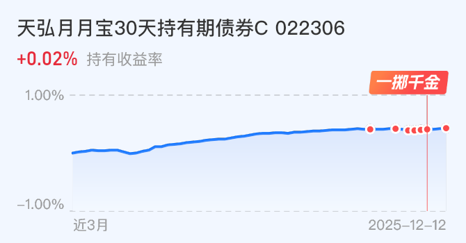 个人今日上车天弘月月宝30天持有期债券C--10万元,这是一支持仓体验温和、防守能力突出的纯债基金。不投股票、无可转债、主动避开剧烈波动的标的,在震荡行情中持有体验舒适,抗波动能力突出。不仅近一年历史涨幅2.24%吊打同类1.36%的同期均值,且近一年以来的最大回撤仅为0.1%,10天完成修复,在轮动风格切换频繁的市场环境中,拿的住、赚的到。大家熟悉的余额宝初期接入的也是天弘基金的货币基金,实力背书。我把月月宝当成余额宝的增强版,收益上限更高、主动避险风险、也是当下我调整总持仓波动的主要仓位,当前一年期利率存单仅1%不到,月月宝的灵活性及复利空间在低利率周期中是普通人低波动、稳健需求中的高性价比选项。讨论区6楼有卡券包可以直接抵扣,薅羊毛性价比更高。