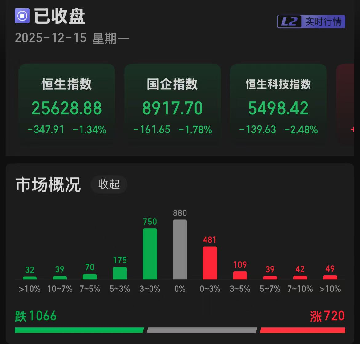 恒生指数下跌1.34%,国企指数下跌1.78%,恒生科技指数下跌2.48%。721只个股上涨,1066只个股下跌。南向资金,净流入36.55亿港元。