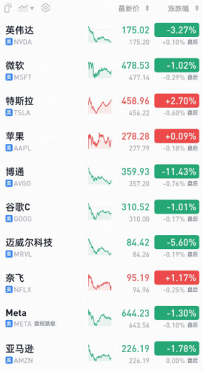 【重仓涨跌】上周五华宝纳斯达克精选前十大重仓股3涨7跌,美元兑人民币中间价↓0.07%。