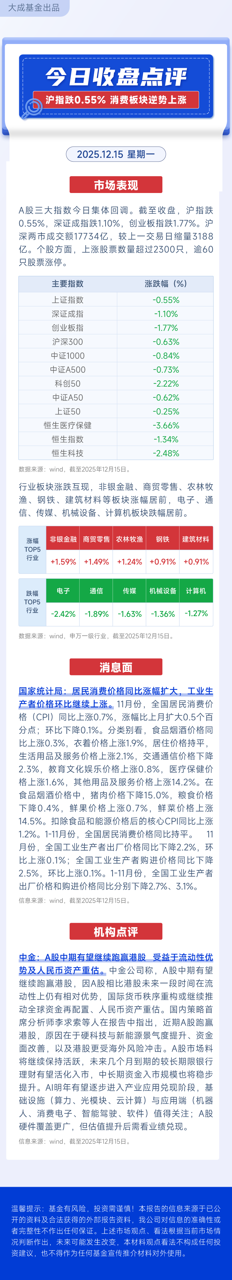 收盘点评:沪指跌0.55%,消费板块逆势上涨