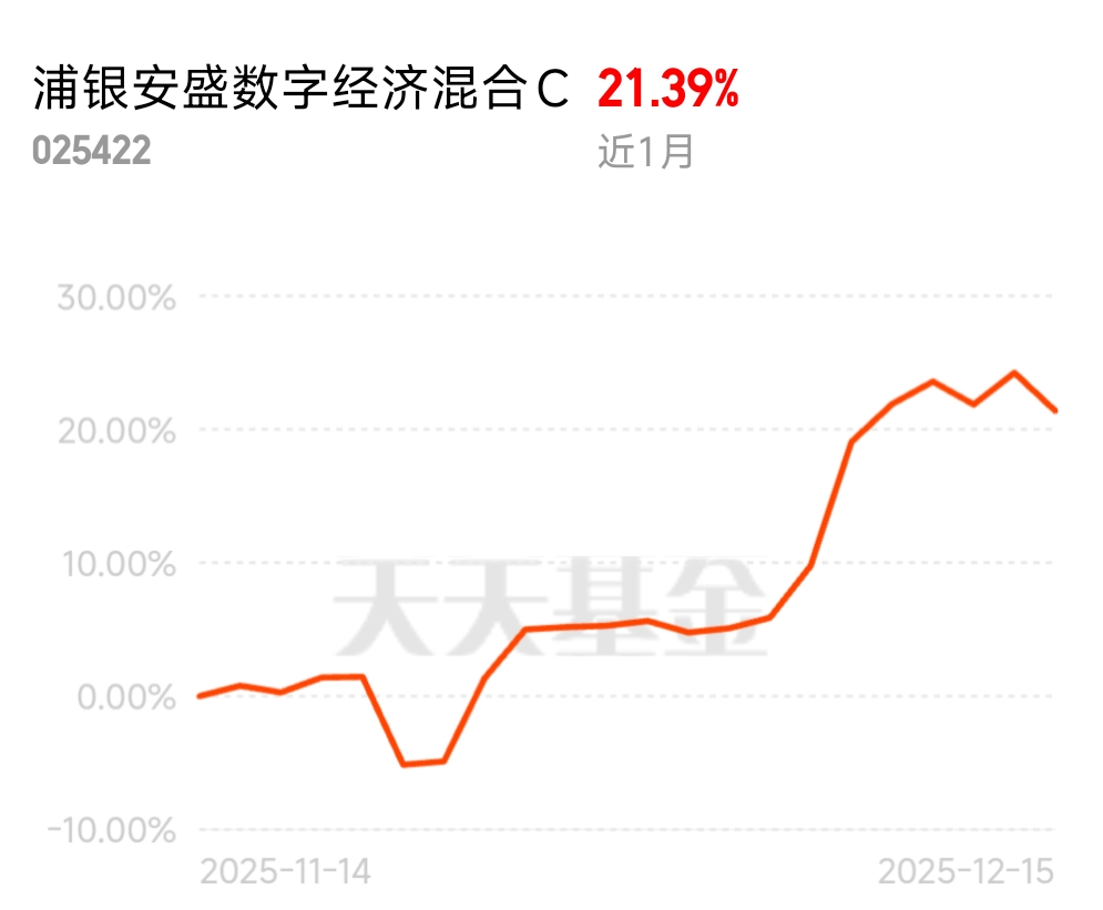 #我的超额日记# $浦银安盛数字经济C$: 跌的少的CPO 今天CPO迎来调整,之前恐高没上车的,机会终于来了!浦银安盛数字经济15个交易日只跌了3天,跌的还比别家的少,可算选中涨的好又跌的少的CPO,11月末入的现在已经快20个点了,这次不到40%别想把我洗下去!新人就是猛!浦银数字经济近一周业绩还是顶,在车上的吃爽了,再跌我再抄,光通信爆发还是得看CPO,CPO里还是得看主动基,这种科技核心资产,弹性也足,拿住就对了,而且这个基是新成立的基,没有历史业绩负担,调仓也方便啊