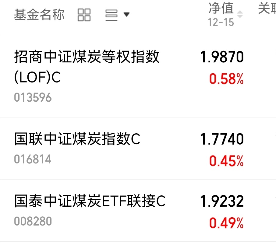 $招商中证煤炭等权指数(LOF)C(OTCFUND|013596)$昨日涨幅0.58%